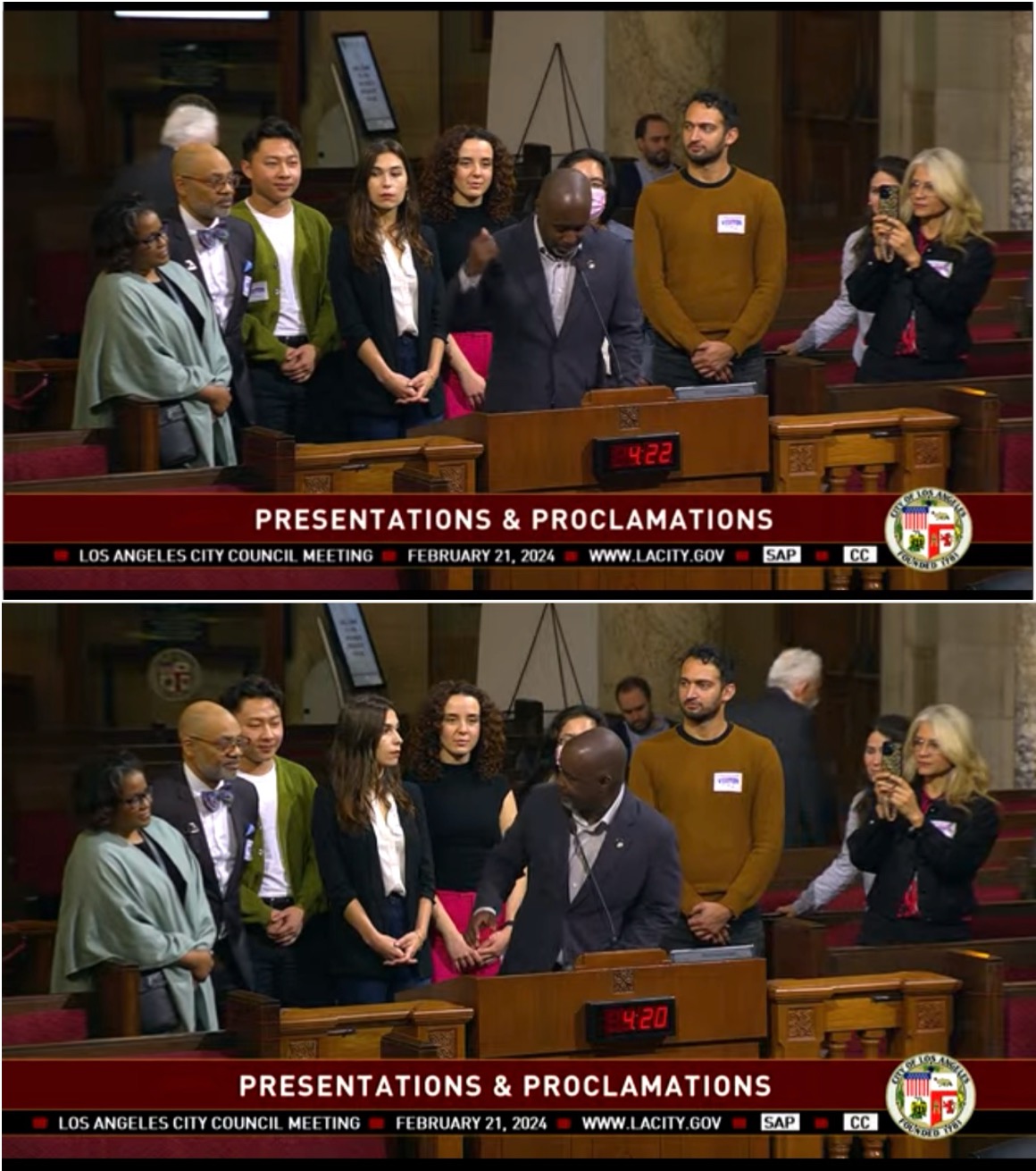 Before a city proclamation was presented, from one appointee, Heather Hutt (CD10) to another, Nithya Raman (CD4) who got more votes than any city council candidate ever and is facing a tough re-election race, interjected to say it was fortuitous that there "would be a robust presentation" for the Senator.