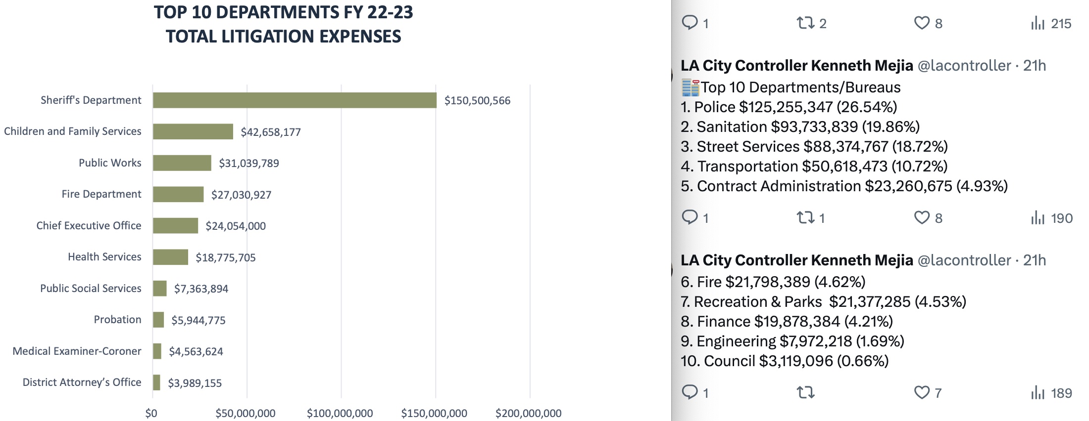 I don’t want to come across as too negative or discouraging in my remarks here about the Controller Kenneth Mejia’ information drop on some of the details about the City of Los Angeles’ lawsuit factory. It’s a good start. Link