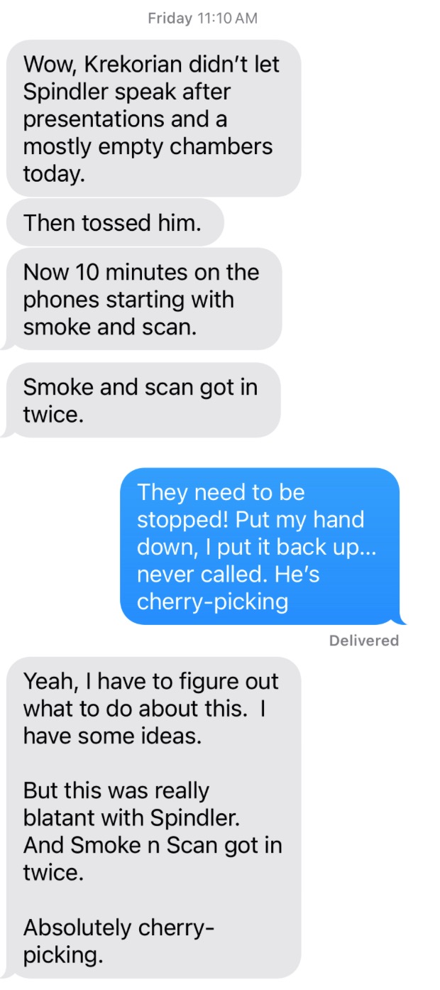 Smart Speaker: OK. Thank you. Well, first of all, I just want to say there needs to be a Brown Act clarification. Sir, you can't require people to identify themselves at Brown Act meetings for a variety of reasons. It's just the law. so Renee Stadel the City Attorney needs to take a quick cup of coffee and apologize to Mr. Spindler and cure and correct this. Because, that's just the law of the land. The reason I could go into later, but we have already spent a lot of time on this. So... It's probably true that Rick Jacobs who got fined $12,500 for lobbying for the Carpenter union bareback is not a carpenter, though I believe he's something of a wood enthusiast. I would suggest Jacobs be given the full fine of $25,000 based on the egregious conduct that unfolded in Mayor Garcetti's office with LAPD officer Matt Garza...et al....