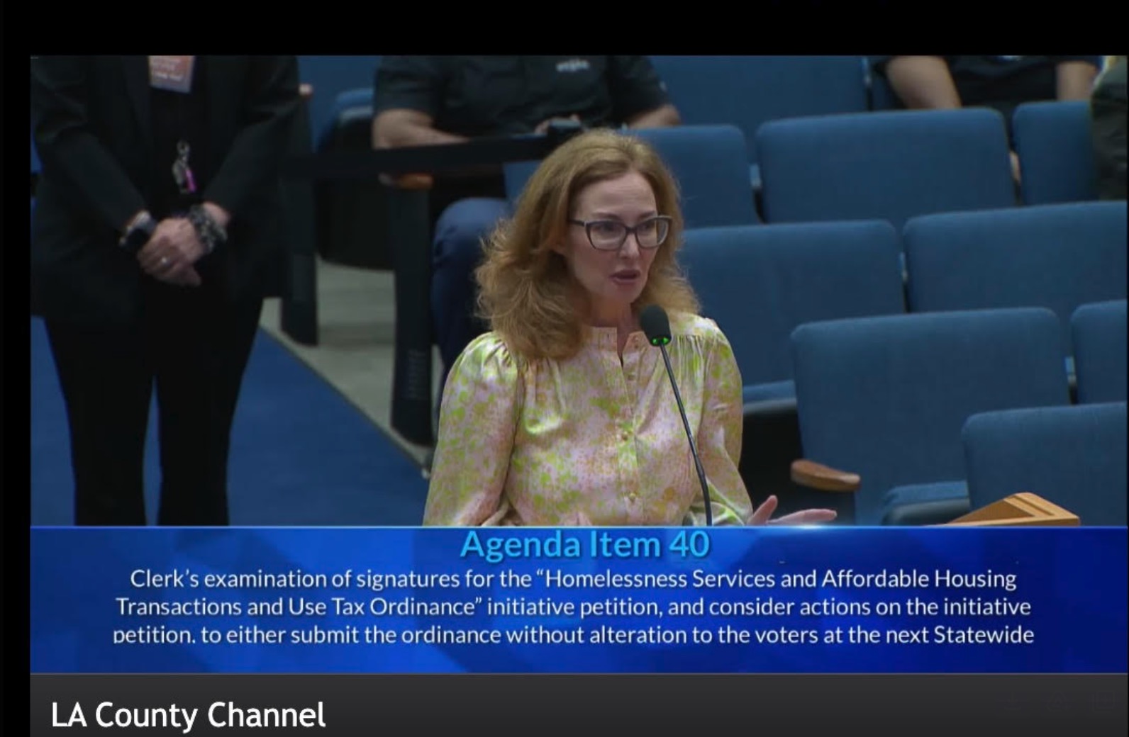 Other usual suspects, who made the promenade downtown to adore the Supes were Yvonne Wheeler of the County Federation of Labor, Sarah Dusseaux of the Blue Ribbon Commission, and Stephanie Klasky-Gamer of LA Family Housing. They all came to kiss the rings and offer support for the Supervisors' effort to get a new 1/4 cent sales tax on the ballot to replace Measure H.
