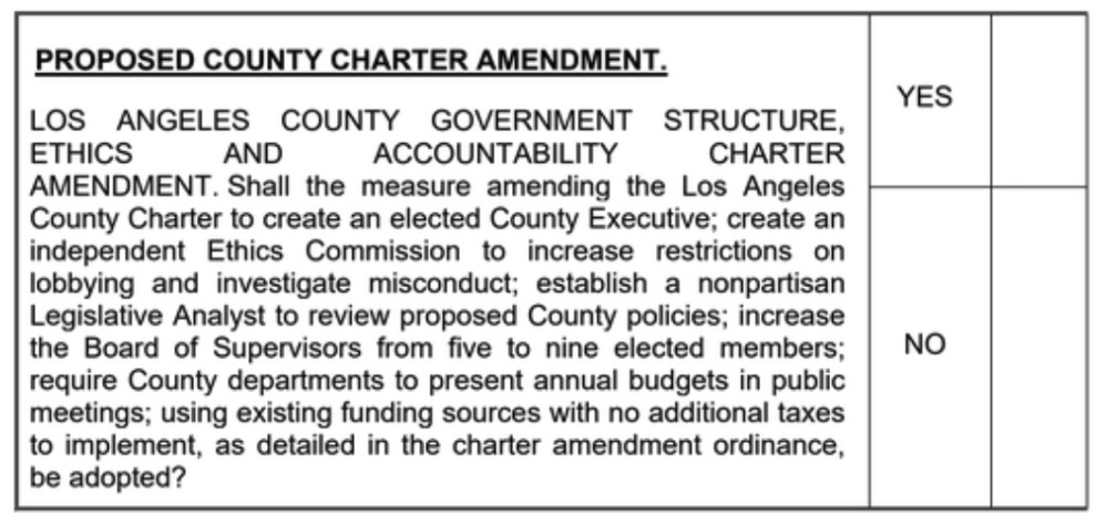 Dean Logan seeks the authority to negotiate deals involving the VSAP system without proper oversight, all while the effort to make it open source continues. This is a dangerous move, especially considering the Registrar-Recorder/County Clerk is not an elected position. Meanwhile, ballot measures aimed at expanding the County Board and creating an elected County Executive, along with an ineffective Ethics Commission, are being rushed through with minimal public input. Look at this language. Could it be any more confusing?