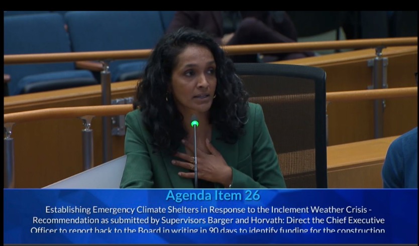 Nithya Raman, shown sucking up to the Board of Supervisors. Neither agency has done anything o protect the open space of Studio City