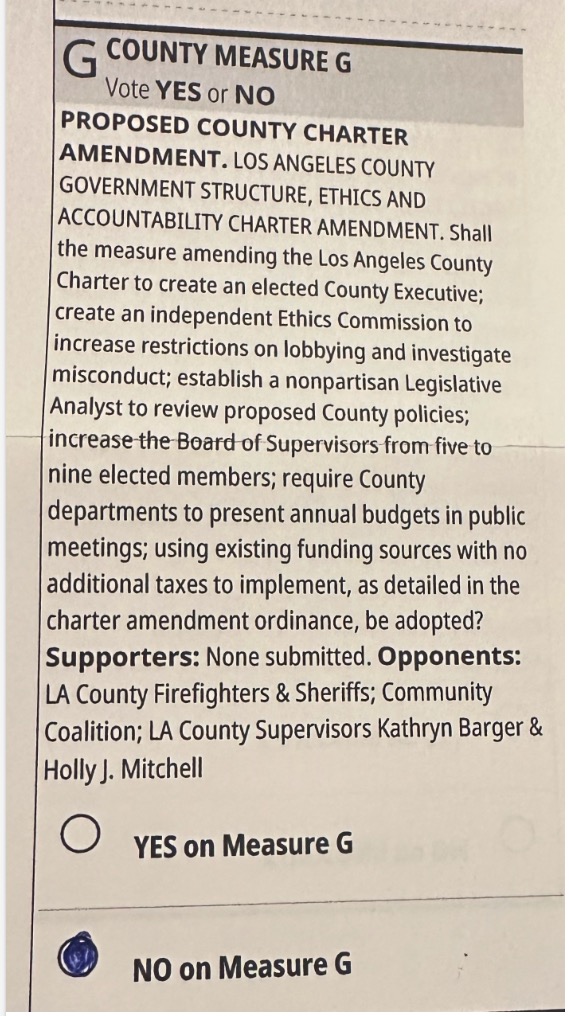 Lindsey Horvath, in the meantime a little David Ryu-nik, is going hard for Measure G. I'm telling people of Los Angeles, NO on Measure G. That would be an expansion of the dysfunctional government that currently exists. We don't need to bring more supervisors we need to bring leadership into the existing government. We need 5 committed leaders who can help make departments comply. Out here in the public, we are trying ...but you have made it so difficult. First, under the pernicious and arrogant leadership of Sheila Kuehl...her north star was to make public comment... virtually impossible. Incidentally, Lindsey just canceled the regular board meeting on November 19th.