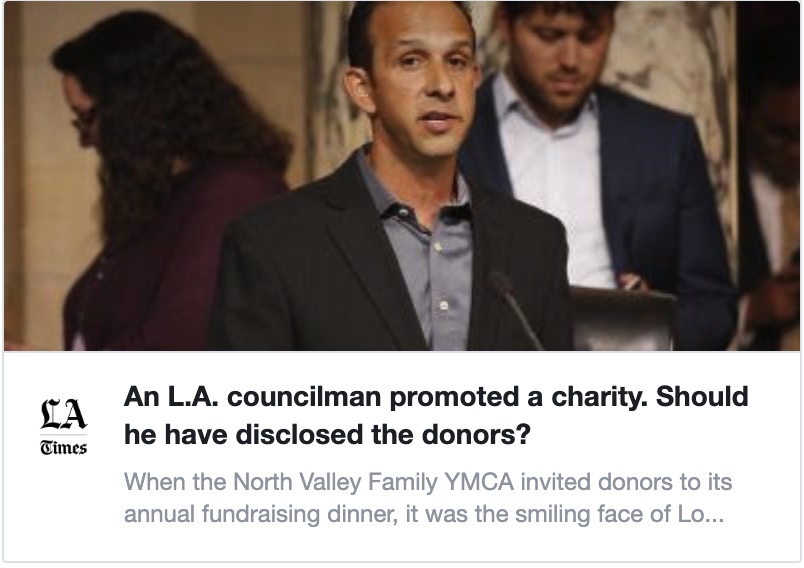 In last week’s column, I highlighted how Nazarian was “cornered” at the library handing out state coffee, leading to a debate that was anything but voluntary. But frankly, Krekorian and Nazarian have been avoiding debates for years. The Times and the Editorial Board were well aware that Krekorian was funneling out-of-district money through the matching fund program while refusing to debate, and yet...nothing. The “independent” press covered it, but there were no consequences.