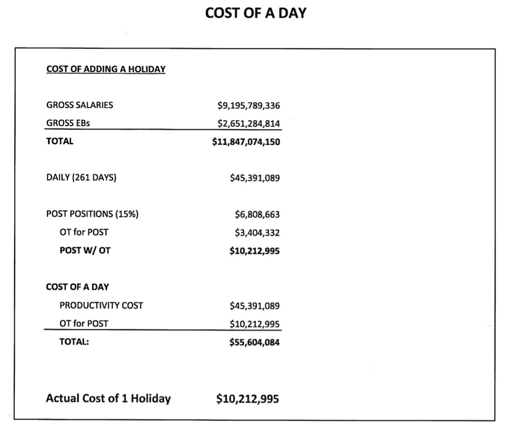 The cost to the county for taking a day off in 2018, it will be more in 2025.