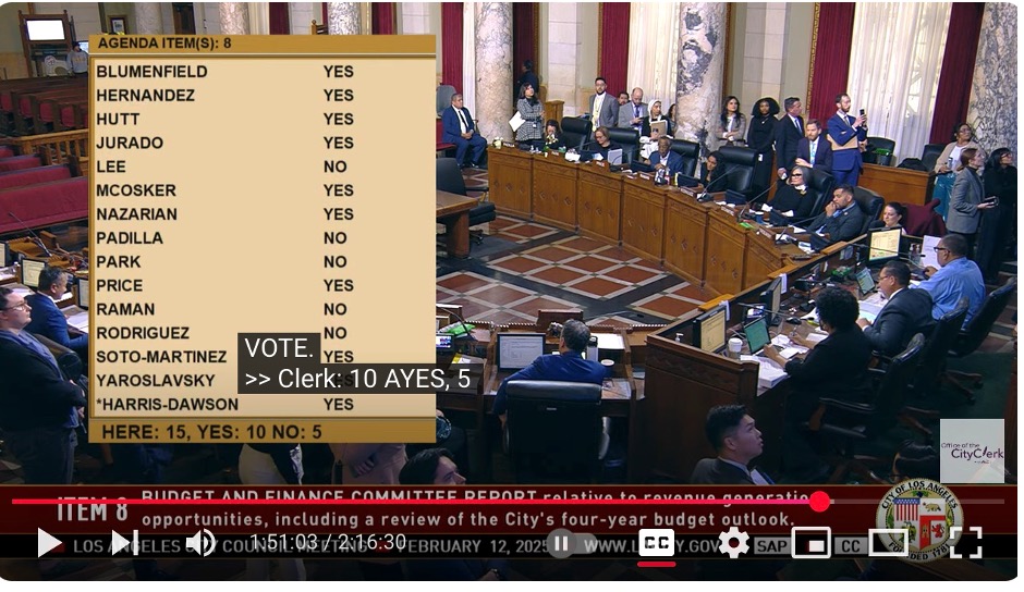 Instead, the council wasted time bickering over a minor amendment (Item 8A, a fire station bond data fix). Monica Rodriguez and Traci Park and Tim McOsker pushed, but the rest insisted on delay. A 10-5 vote to punt proved once again: Process over people. The agenda is to put a bond before the people as soon as possible... which means 'mo money. Sigh.