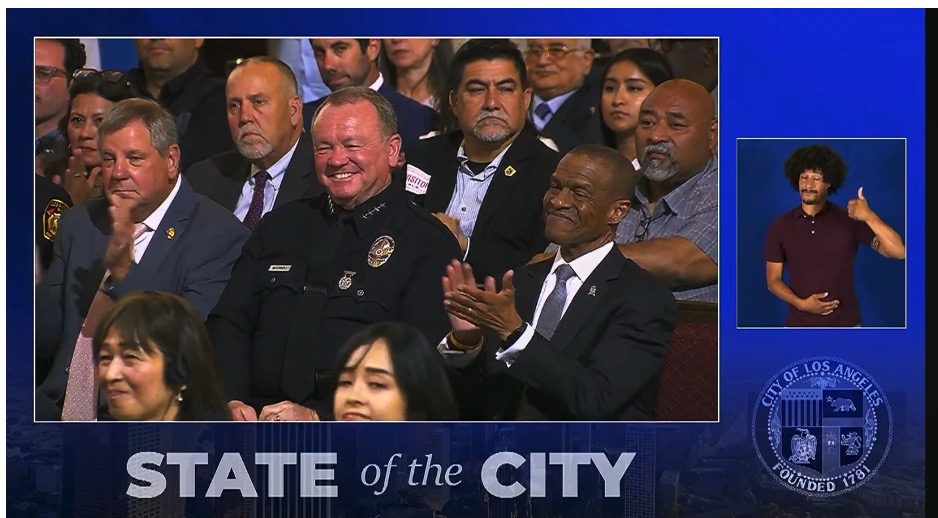Top cop, Jim McDonnell, surprisingly flush for noon!
