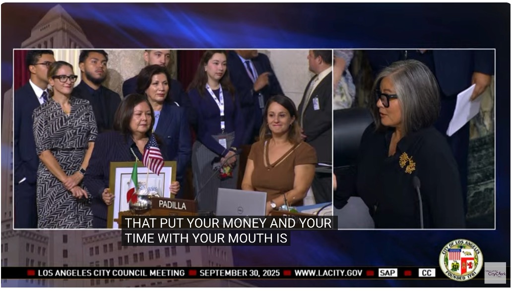 Before the meeting even starts, the City’s Youtube broadcast runs like a Channel 35 TV promo reel: Sunshine Kids Day with LAPD, a “Second Chance” job fair, and then a City Beat segment where councilmembers introduce polished pieces—John Lee praising an LAPD hiring plan, Heather Hutt unveiling the Diane Watson Corridor, Monica Rodriguez touting a relief grant, Eunisses Hernandez inviting everyone to El Grito. It looks and sounds like advertising.