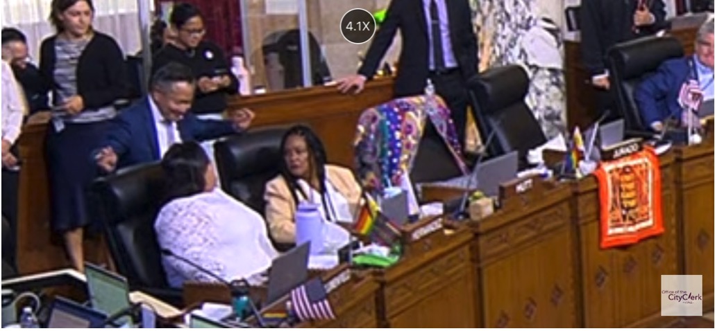 One fairness rule: if members can display banners, then the public should be allowed to hold a letter-sized sign without getting warned for standing too close to the aisle. If City Hall is going to act like a variety show, the public shouldn’t be the only ones told to sit down and be quiet.