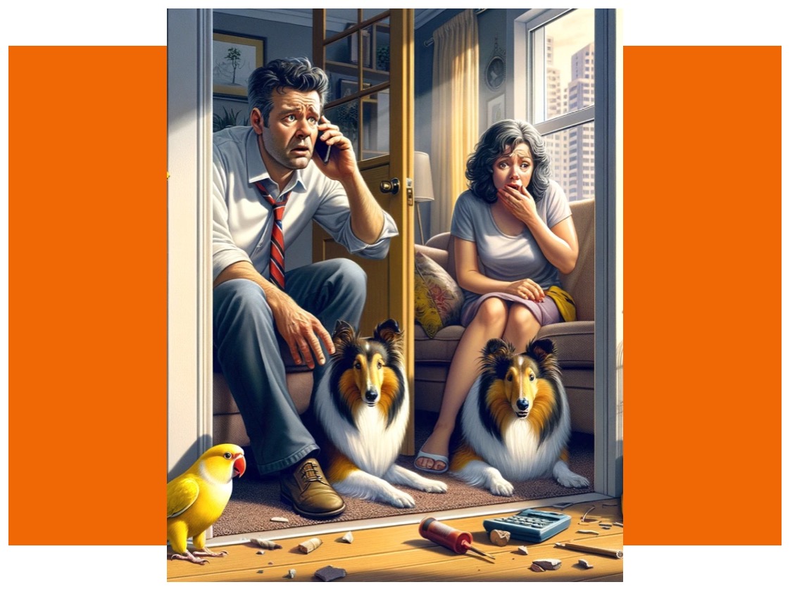In keeping with the conventional wisdom of the time, we scrambled to the hallway and sat under the door frames. I was joined by two furry collie-like dogs, my wife, and a teenager. The yellow lovebird remained in his cage, but communicated his annoyance with a loud "CHIRP!"