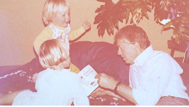 Before going to bed that night around 10:30 p.m., Carter read the children the story 'The Emperor's New Clothes' and retired to the Olson's main bedroom for the night.