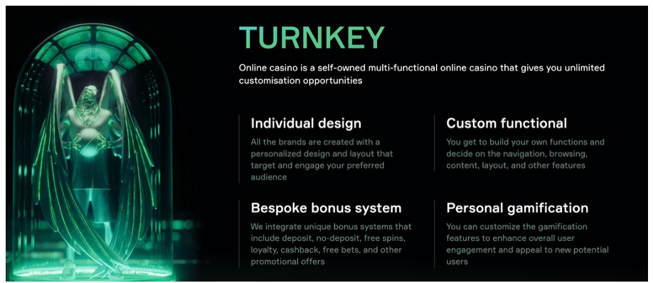 - A turnkey solution is perfect for businesses that want to go live as fast as possible without building their infrastructure from scratch. Everything comes in a bundle – platform, games, integrated payment systems, CRM, customer support, and even licensing is taken care of. It's really like buying a fully furnished, ready-to-move-in online casino.