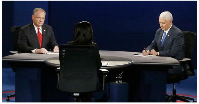 Kaine kept pressing Pence to defend Trump’s slurs against women, the disabled and people of color. He kept goading Pence into defending Trump’s extreme use of the tax code to avoid paying taxes for the government he now seeks to lead. He referenced Trump’s unethical business practices and the thousands of workers and vendors who have been stiffed by Trump’s businesses over the years. He noted that because Trump has not released his tax returns, we have no evidence of Trump’s charitable giving (but we do have a growing number of news stories about his abuse of the Trump Foundation). The Bible that Pence uses as the guide star for his political life contains denunciation after denunciation of people who abuse wealth for their own gain at the expense of those who do not have wealth or power.