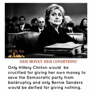 Since Sanders gave nothing and expected everything in return, without the help of Hillary Clinton, there might not have been a Democratic candidate at all. Just as the media allowed Sanders to compete without being vetted or showing his taxes, they are ignoring the fact that he and his campaign gave absolutely no financial assistance but had the expectation of being able to receive ALL the benefits of being a Democratic candidate.