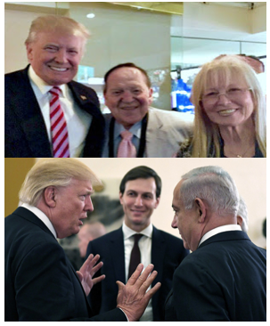 Relying on the intense lobbying by AIPAC, the American Israel Public Affairs Committee, buttressed by the likes of gambling kingpin Sheldon Adelson and fawning son-in-law Jared Kushner.