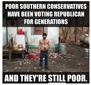 This was followed by “I won’t vote Democrat.” It may be understood that not everyone follows politics or even wants to, but this kind of idiocy is almost unheard of. You also have to recognize that this 30-year old Caucasian guy has avoided paying any taxes his entire working life, has health insurance via the Affordable Care Act, has a wife and kids who are on Medicaid and Food Stamps. Yes, he is so clueless, he doesn’t realize that these benefits are thanks to Democrats. He is also completely unaware of the fact that voting (or not) affects many areas of his life and that of his children.