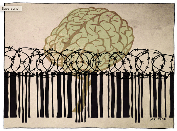 The attacks within this campaign include blacklisting, censorship and slandering dissidents as foreign agents for Russia and purveyors of “fake news.” (Graphic above: Mr. Fish.)