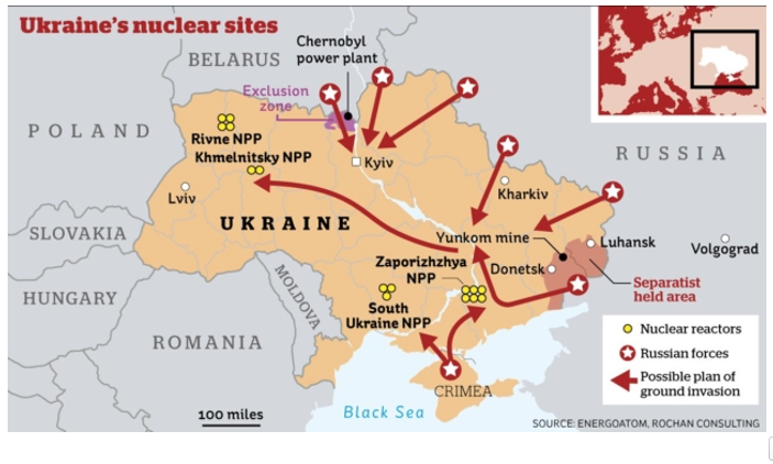But more significantly, what about Ukraine’s nuclear reactors smack dab in the middle of a theatre of war?