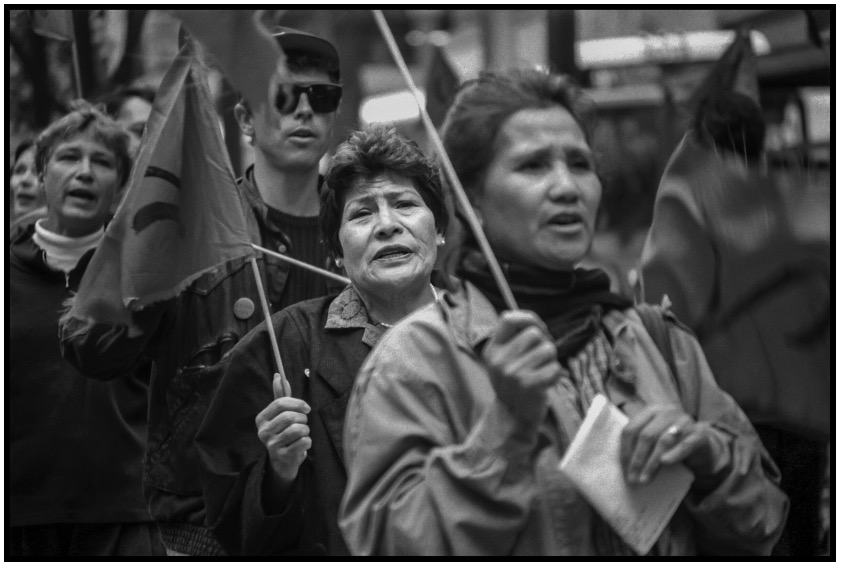 Seeking recognition of their union, hotel staff picketed San Francisco’s Parc 55 hotel in 1989, accusing their employers of forcing them to work off the clock, preventing some workers from receiving overtime pay. All photos by David Bacon.