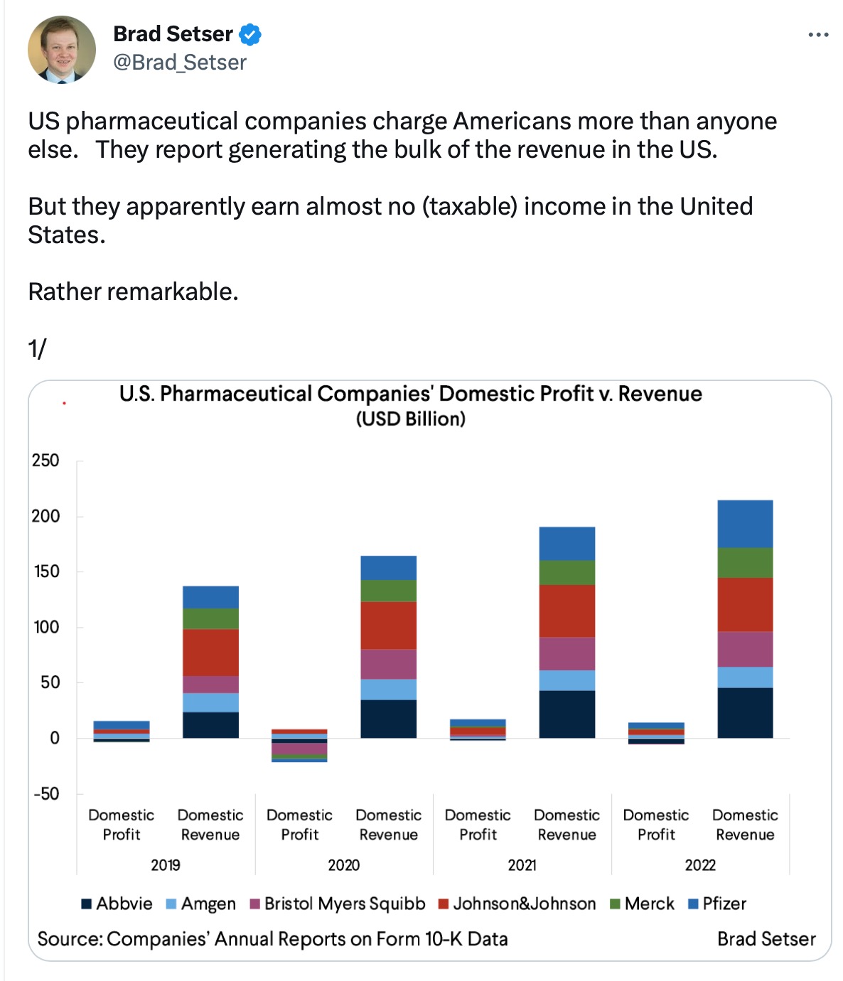 "Big Pharma gets us coming and going—they charge Americans sky-high prices and they pay absolute rock-bottom taxes, not anywhere near a fair share."