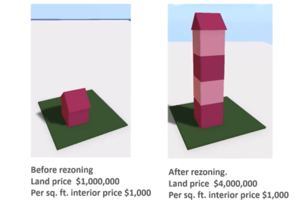 Abolishing single-family zoning and up-zoning in general won’t make housing more affordable because it doesn’t solve the problems of high land prices and higher construction costs of multi-story buildings.