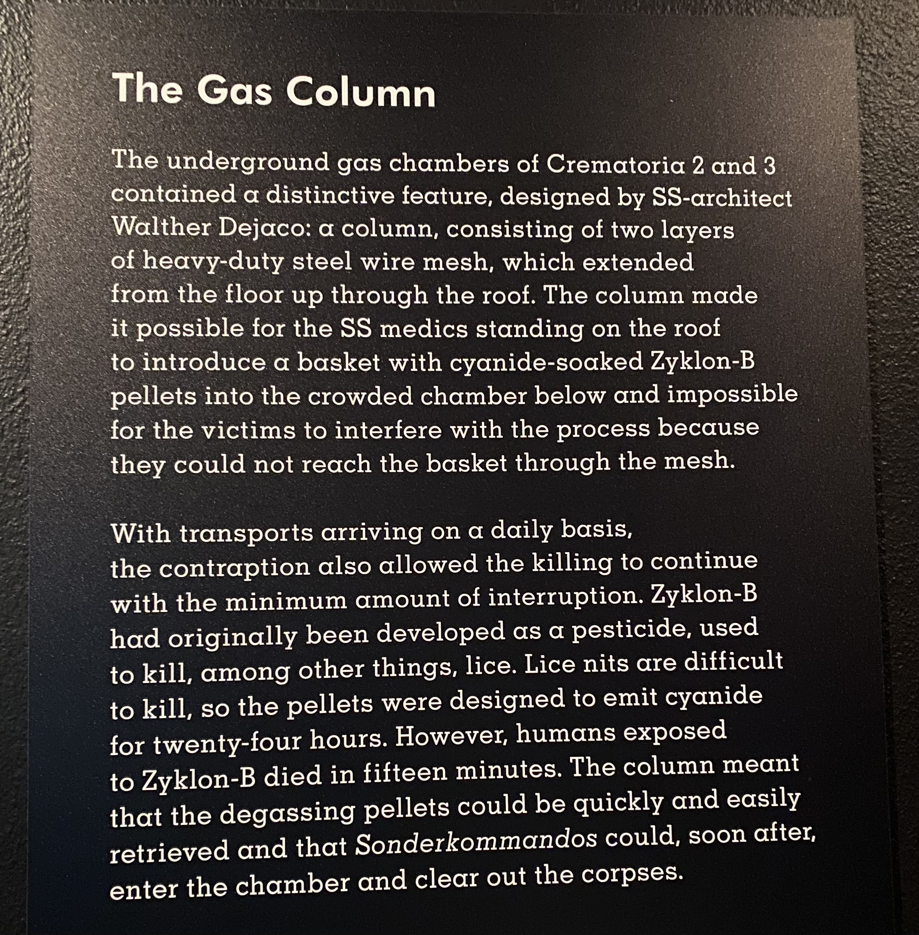 In 1945, Auschwitz Sonderkommando survivor Henryk Tauber recalled: “At about head height for an average man the gas door had a round glass peephole. On the gas chamber side of the door, this opening was protected by a hemispherical grid…because the people in the gas chamber, feeling they were going to die, used to break the glass of the peephole. But the grid still did not provide sufficient protection and similar incidents recurred.”