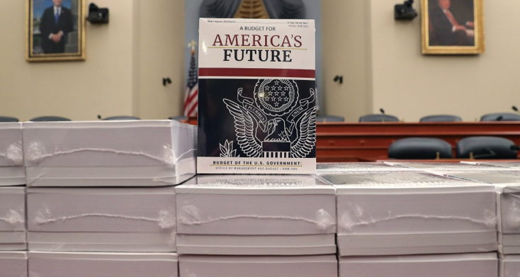 SPECIAL REPORT--Copies of President Trump's FY2021 budget are shown after being delivered to the House Budget Committee on February 10, 2020 in Washington, D.C.