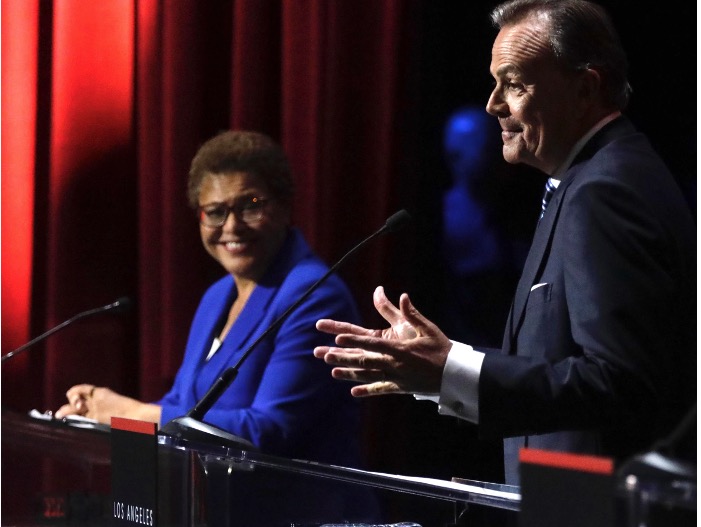 Both mayoral candidates have strong USC links. Caruso, who recently stepped down as board chair, gifted his alma mater with two significant cash donations totaling $75 million. Bass is not a donor, she’s a “receiver”; she was given a free gift of tuition for the university’s social work program totaling $100,000. How and why that happened is tainting her.