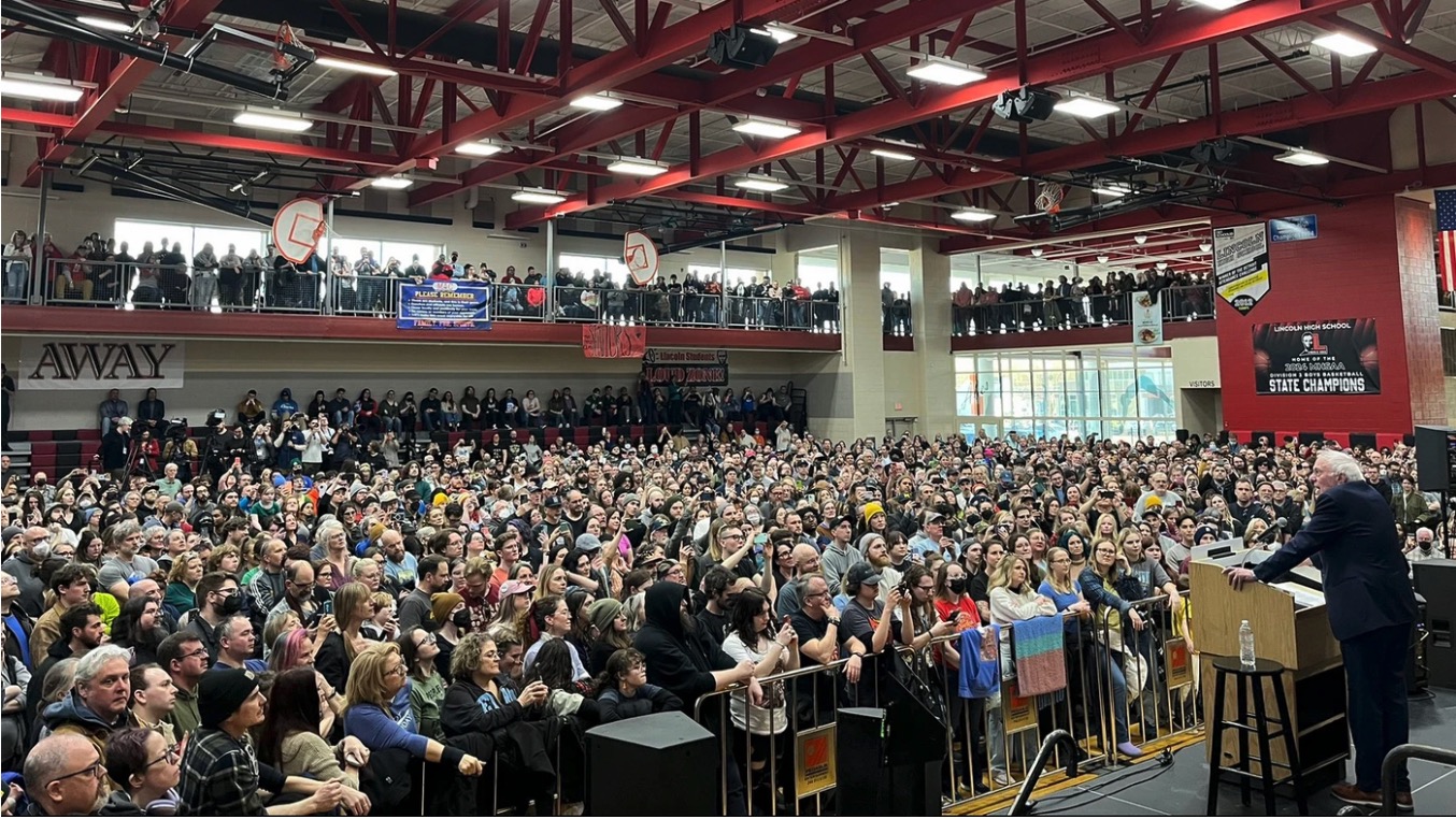 On Saturday, more than 10,000 people turned out to see Sanders (I-Vt.) speak in Warren, Michigan. Not only did they pack the main event space—the gymnasium at Lincoln High School—literally to the rafters, they filled two overflow rooms, with hundreds turned away outside, according toMichigan Advance.