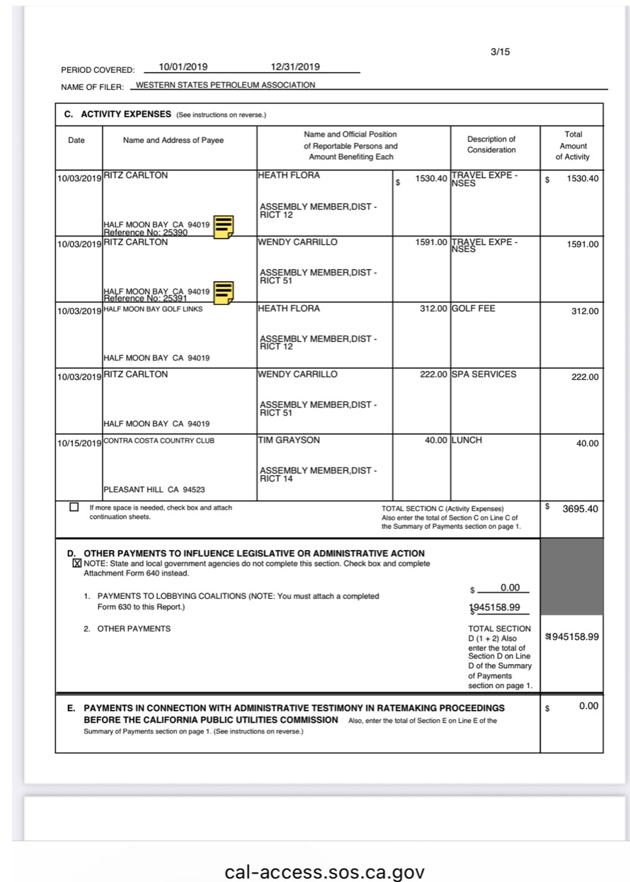 Take a look: Western State Petroleum Association paid for Wendy Carrillo to receive a spa treatment at Ritz Carlton valued at more than $200.