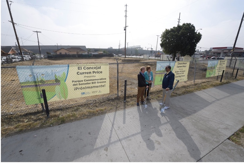 CommentsLA WATCHDOG - On March 26, Cynthia McClain-Hill, the President of the DWP Board of Commissioners, and Councilman Curren Price led the groundbreaking for the Senator Bill Greene Memorial Park at the corner of Figueroa and Slauson