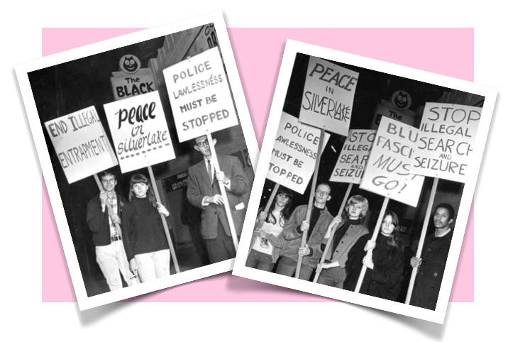 LGBTQ HISTORY - The round face of a cartoon cat—big eyes, earnest smile—still hangs off the front façade of the Black Cat in Silver Lake.