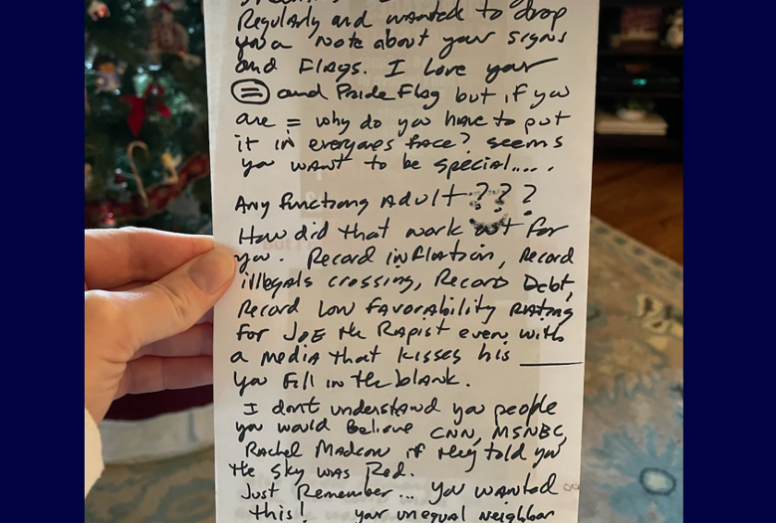 LGBTQ NATION - A lesbian couple is speaking out after getting a hateful Christmas card from an anonymous neighbor.