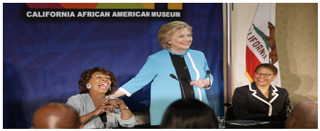 Last week, social media was ablaze with African-American women posting selfies with Hillary Clinton when she appeared at the California African-American Museum (CAAM) in Exposition Park at the request of Congresswomen Karen Bass (D-CA37) and Maxine Waters (D-CA43). (Photo above.)