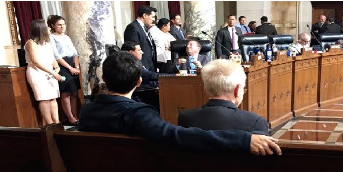 So, it was no surprise last week that City Council, as predicted, unanimously confirmed Garcetti’s re-appointment of Roger Wolfson to the LA Animal Services Commission despite having a 41% absentee/tardiness record in 2015, on track for worse in 2016 and his ongoing failure to pay his overdue dog licenses or their late fees. In fact, City Council failed to ask Wolfson a single question as he sat in the front row with his arm wrapped behind LAAS GM Brenda Barnette. (Photo above.)