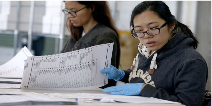 Snafus happened when voters showed up at different polling places than where they were registered and ended up mistakenly voting for down-ticket races for which they weren’t eligible to vote. In San Diego, workers redacted those particular votes with white correction tape, leaving in place the votes for president and U.S. Senate. In other counties, election workers were copying the voter’s choices to a clear ballot, similar to what happens with damaged ballots. An activist group in San Diego has filed a lawsuit claiming that the procedures followed to recount the required manual recount of one percent of the ballots were incorrect.