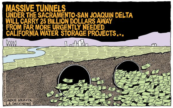 MWD and agribusiness are funding a spin campaign to sell the tunnels. They even make the claim that these tunnels could help save endangered fish populations. This Orwellian argument was squelched by a recent federal study that showed that the tunnels could decimate the struggling wild salmon population.