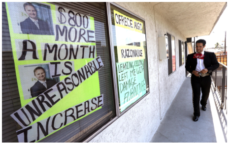 And this paragraph: “Tyler Anderson, co-director of LACCLA, said the conflict at the Boyle Heights apartment building speaks to a trend of investors converting affordable housing units into luxury ones.”
