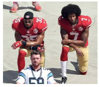 The contrast between the respect shown by Reid and other players in the NFL and the bile spewed by the president of the United States – who not only insulted the players, but extended the insult to their mothers – cannot be overstated. Listening to this president speak is like watching an infant be torn to shreds by wild pigs. (Photo right: Eric Reid and Colin Kaepernick.)