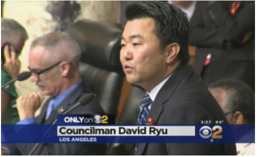 When I called him out on this issue, Ryu, who was preoccupied with munching down on cake from his presentation, suddenly upped and walked briskly past Council President Herb Wesson and exited…which I pointed out to the chuckling attendees. (A more professional evasive move Councilmembers often make is to quickly engage in a sidebar with another Councilmember, as if that makes the viewing audience unable to hear the criticism, too.)