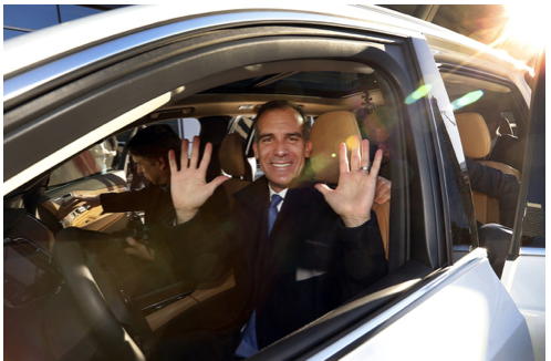 Yet “peak car,” like the linked concept of “peak oil” has failed to materialize. Once the economy began to recover from the Great Recession, vehicle miles traveled, sales of cars, and particularly trucks, began to rise again, reaching a sales peak the last two year. Instead, it has been transit ridership that has stagnated, and even fallen in some places like Southern California. (Photo above: Los Angeles Mayor Garcetti in driverless car.)