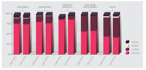 Vista, which is home to Issa’s Congressional office, is over 48 percent Latino, the highest percentage of any sizable city in the 49th District, but has only one Latino on its five-member city council.