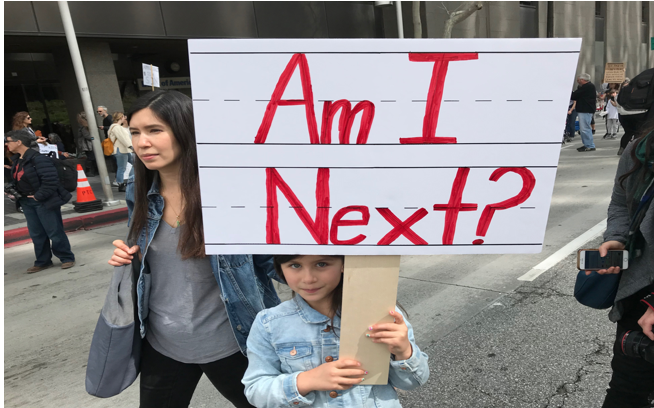 CommentsGELFAND’S WORLD--I was a little concerned that the number of people showing up for the march against gun violence might be lower than expected. After all, it's been a month since the last mass shooting, and you know how the American people are always being accused of having a short attention span. Instead, the streets were packed and the rally area going from the City Hall to the Music Center was jammed.
