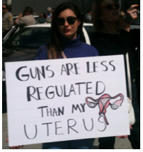 There were a lot of signs. One young girl held this one: "Am I the next?" One woman held a fairly large board that was covered with names in small script. It was the roll of the dead. There was a woman holding a sign saying, "My uterus is more regulated than guns."