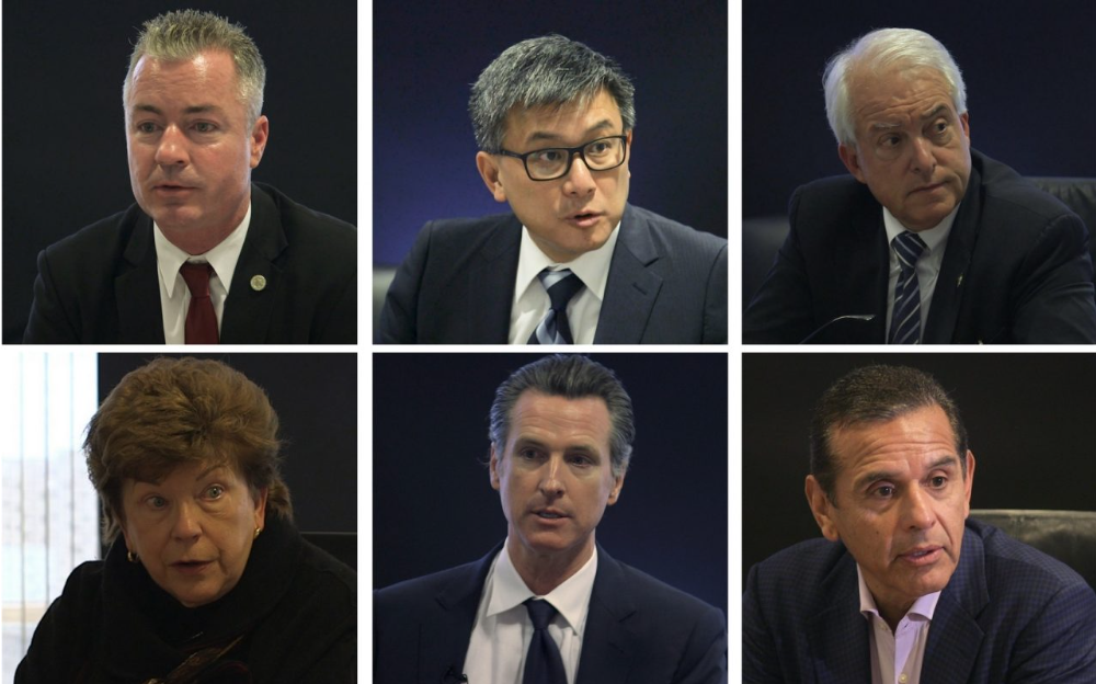 The answer lies in a raft of secret questionnaires that candidates complete as they seek endorsements from a range of groups that will lobby them after they’re elected -- and remind them of what they committed to before they won. (Photo above: The six leading candidates for California governor, from top left: Republican Travis Allen, Democrat John Chiang, Republican John Cox, Democrats Delaine Eastin, Gavin Newsom and Antonio Villaraigosa)