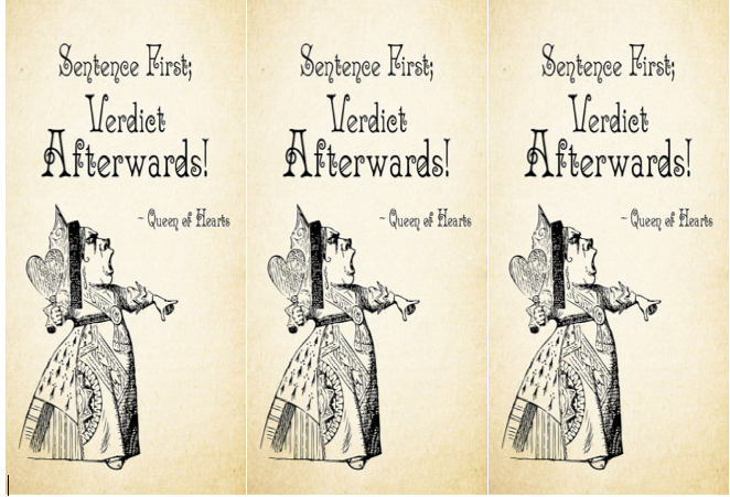 "Let the jury consider their verdict," the King said, for about the twentieth time that day. "No, no!" said the Queen. "Sentence first–verdict afterward."