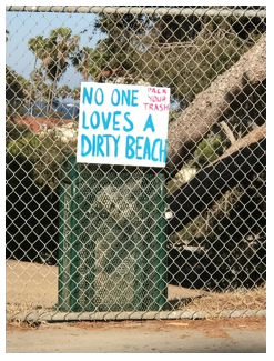 Human fecal matter and used toilet paper are discovered in the mornings outside a city-run child-care facility at Cabrillo Beachcalled the Bathhouse. Broken glass and burning coals in the sand await unsuspecting beachgoers with bare feet. Scattered styrofoam plates and plastic cups from overturned trash cans litter the beach and decapitatedbirds from religious ceremonies lie in the sand. A large dog runs off leash near the water leaving a pile of waste that is left by the owner. There are no dogs allowed on the beach, but nobody is there to enforce the rules or manage the beach.