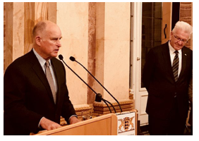 Gov. Jerry Brown speaks to European officials about climate issues last year. Photo by Julie Cart/CALmatters