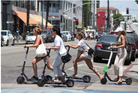 it’s now visible on the streets as fact. Spend ten minutes on the corner of any major street and witness the parade before you: personal cars, ride-sharing cars, busses, bicycles, electric scooters on streets, and skateboards and people walking on sidewalks. Yet more evidence that our city is turning into an alternative mobility paradise, with choices to fit every lifestyle.
