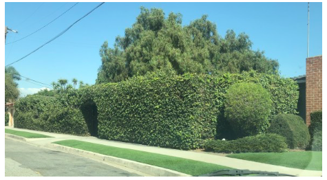 On April 3, 2018, Inspector Greenwood, from the Building and Safety Division of the City of Inglewood performed a “pre-sale” inspection which revealed a slew of code violations, related to illegal conversions done to the property. It’s easy to miss the fact that the house has no accessible garage; this is obscured by the fortress-like shrubbery that surrounds the exterior. (photo, left)